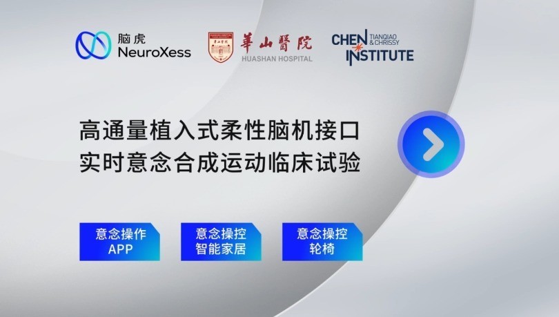 2024 年 8 月,脑虎科技联合华山医院神经外科毛颖 / 陈亮教授团队顺利完成意念合成运动临床试验。受试者为 21 岁运动区占位的癫痫患者,通过手术植入 256 导高通量柔性脑机接口监测病灶并保护运动相关的重要脑功能区。